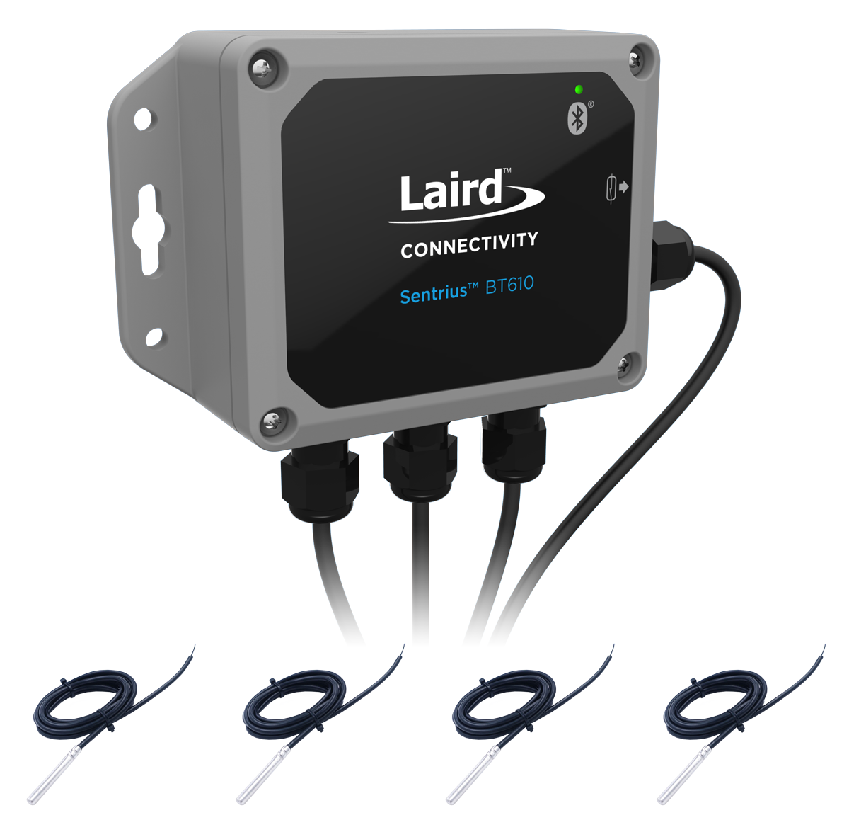 Extended signal reach, large-capacity battery, and multiple industrial sensing inputs make Sentrius BT610 an ultimate wireless node for complex equipment monitoring solutions, such as HVAC monitoring, tank monitoring, or three-phase AC current sensing.